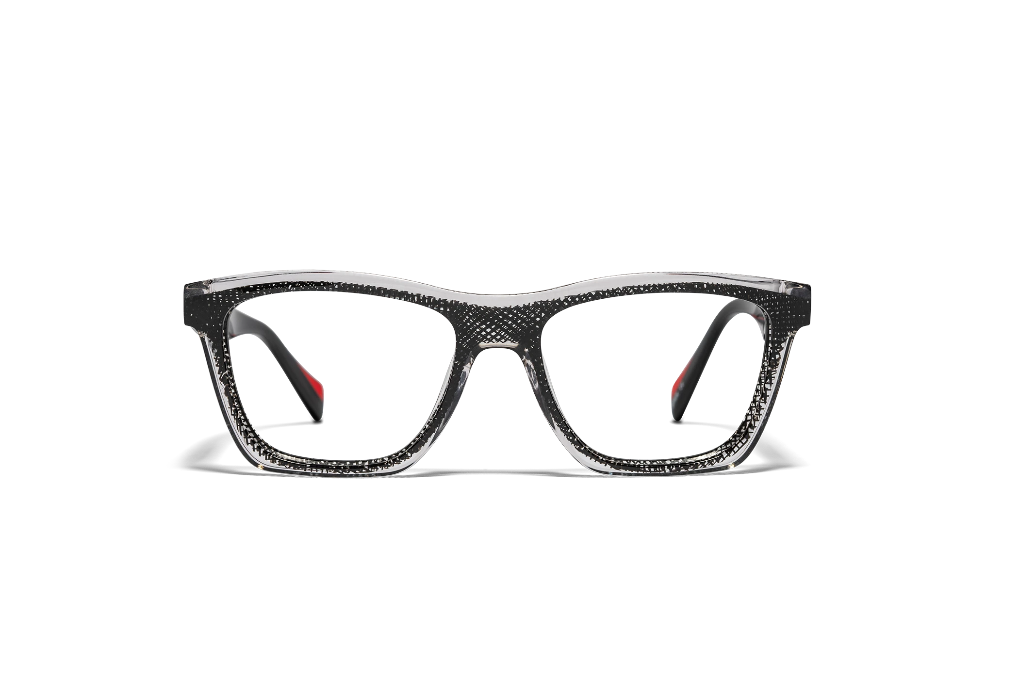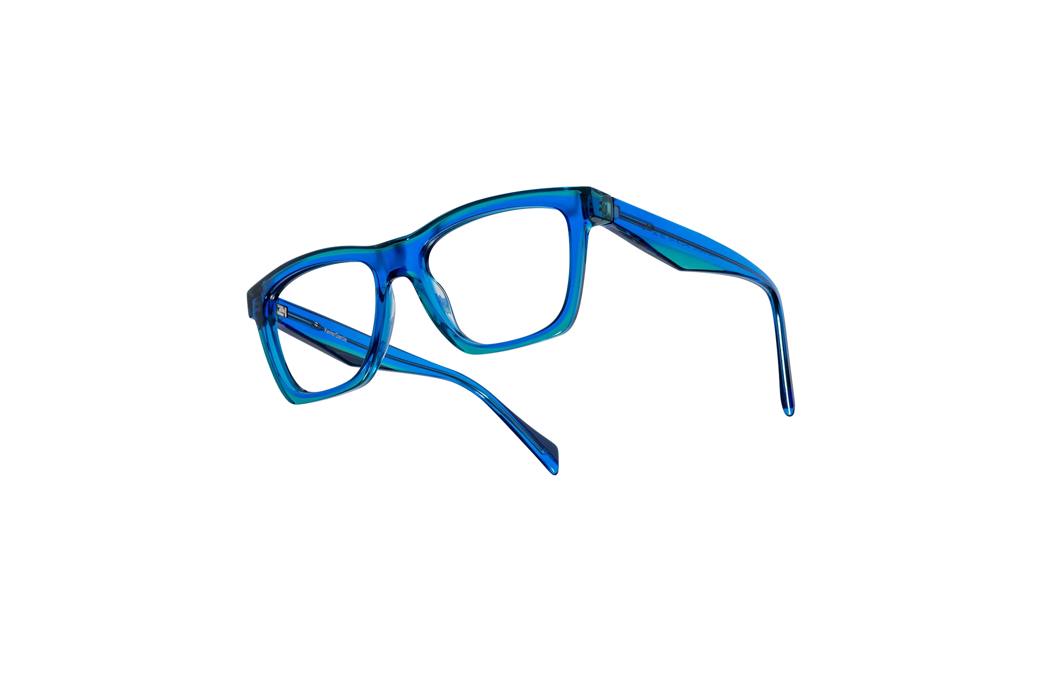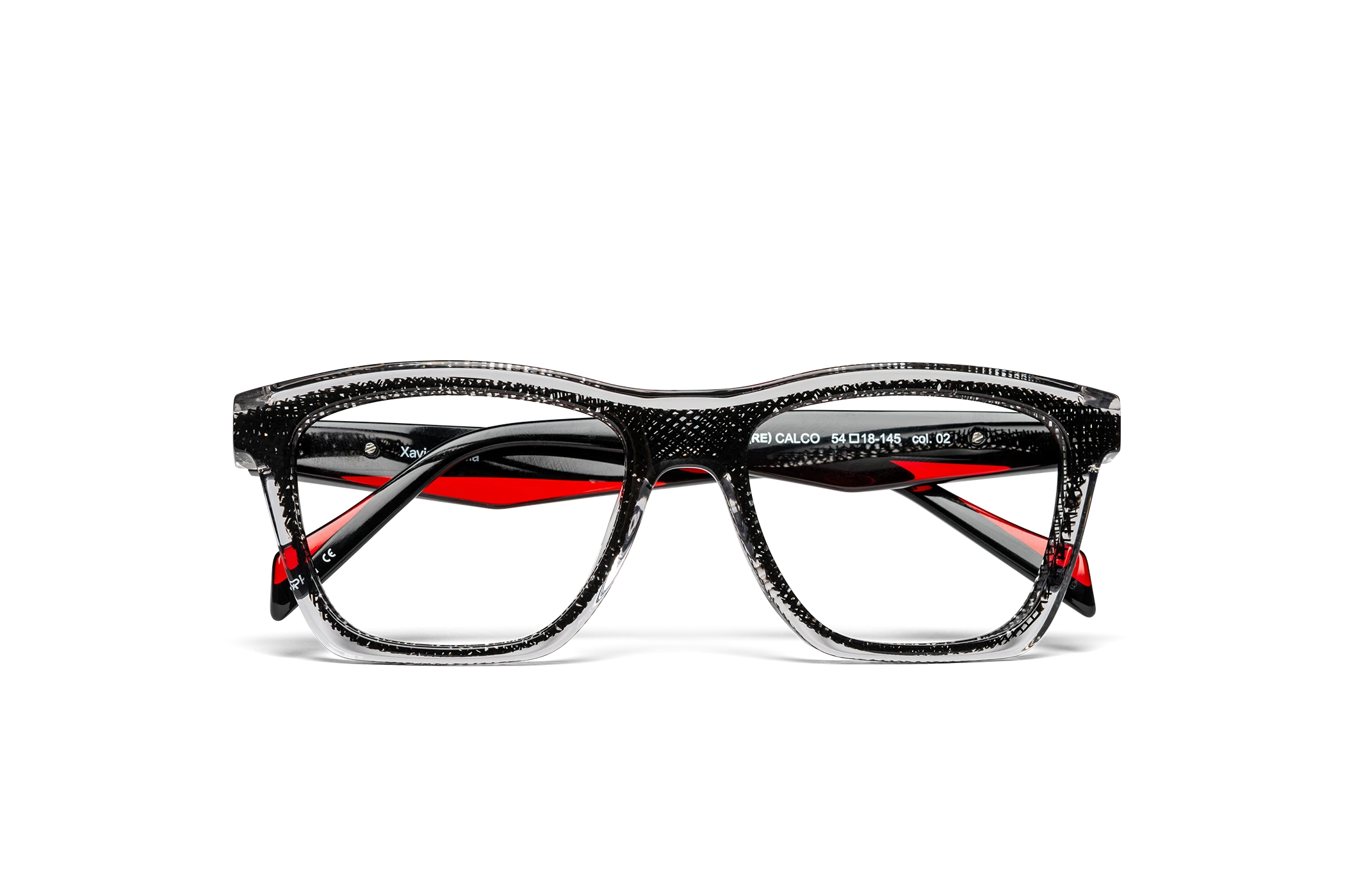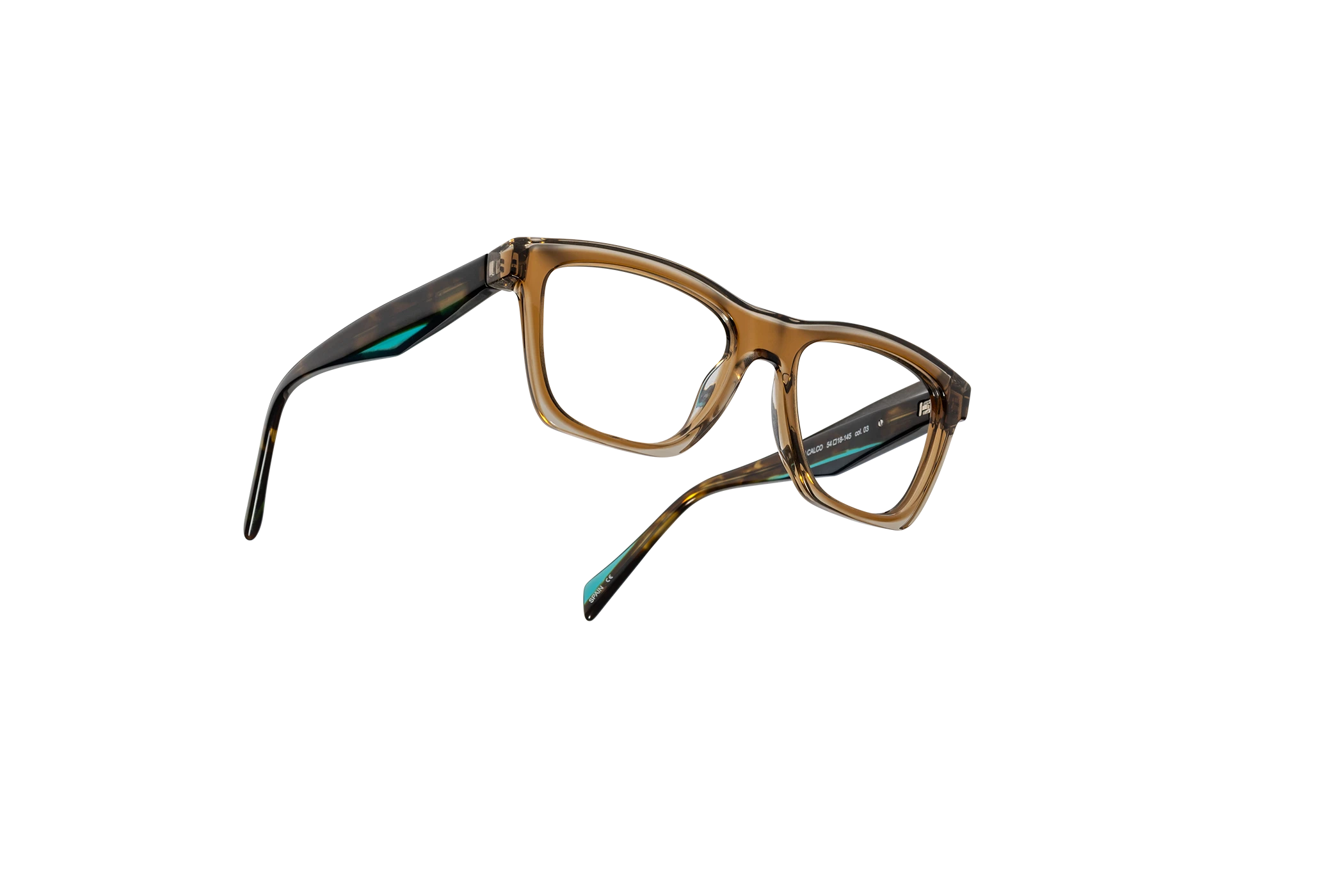 (RE)CALCO es nuestra versión de una clásica forma masculina de acetato. El laminado frontal juega con la interrelación de dos formas en una en una combinación de colores cristal que aportan luminosidad y ligereza. Flex intercambiable integrado en la varilla para un mayor confort.