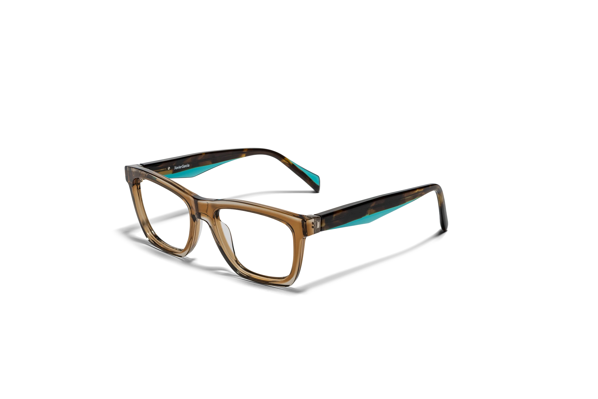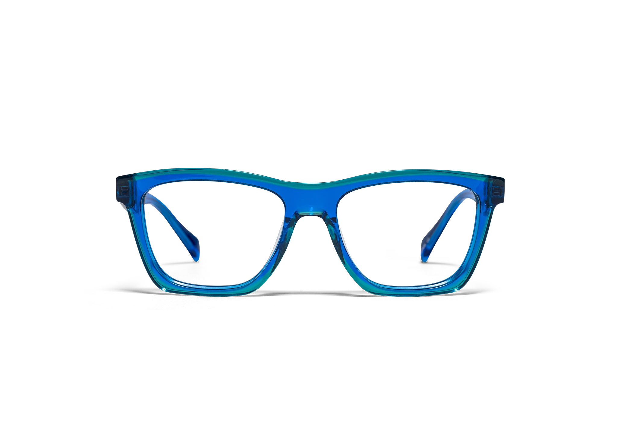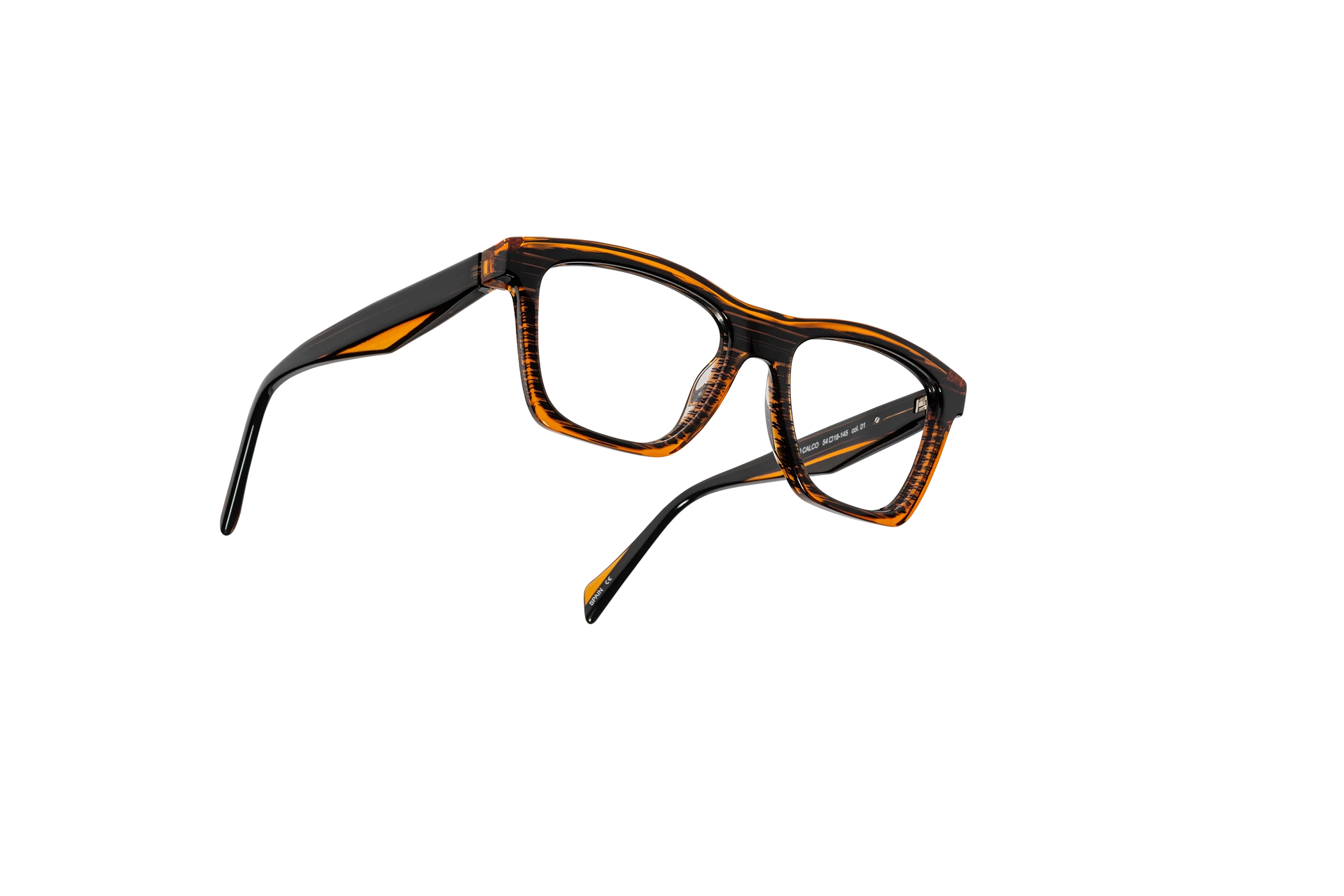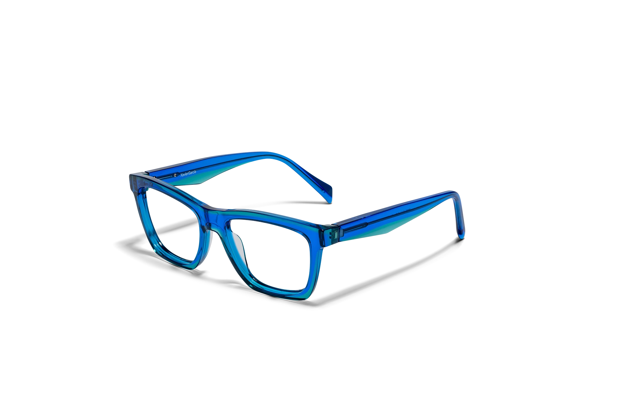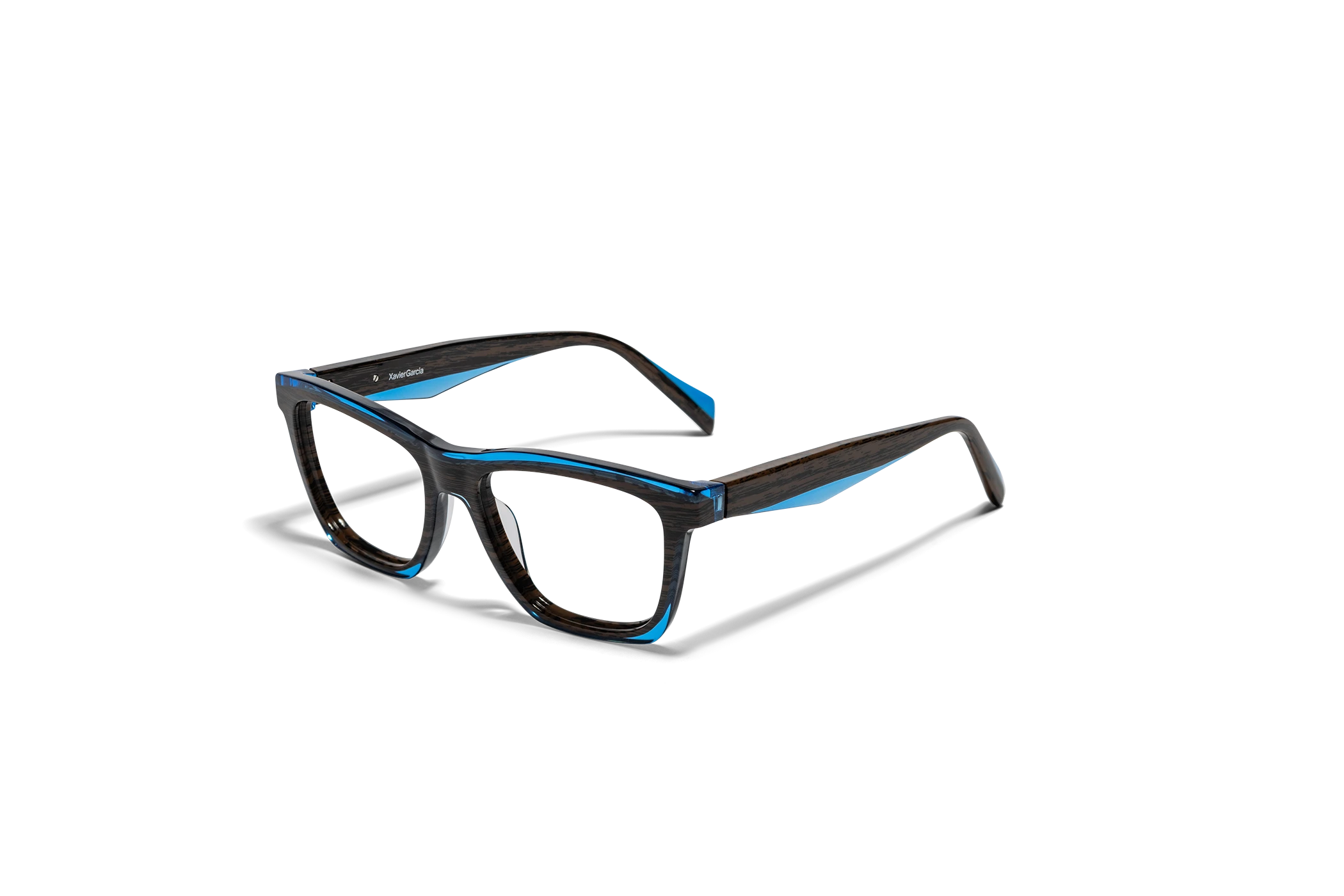 (RE)CALCO es nuestra versión de una clásica forma masculina de acetato. El laminado frontal juega con la interrelación de dos formas en una en una combinación de colores cristal que aportan luminosidad y ligereza. Flex intercambiable integrado en la varilla para un mayor confort.