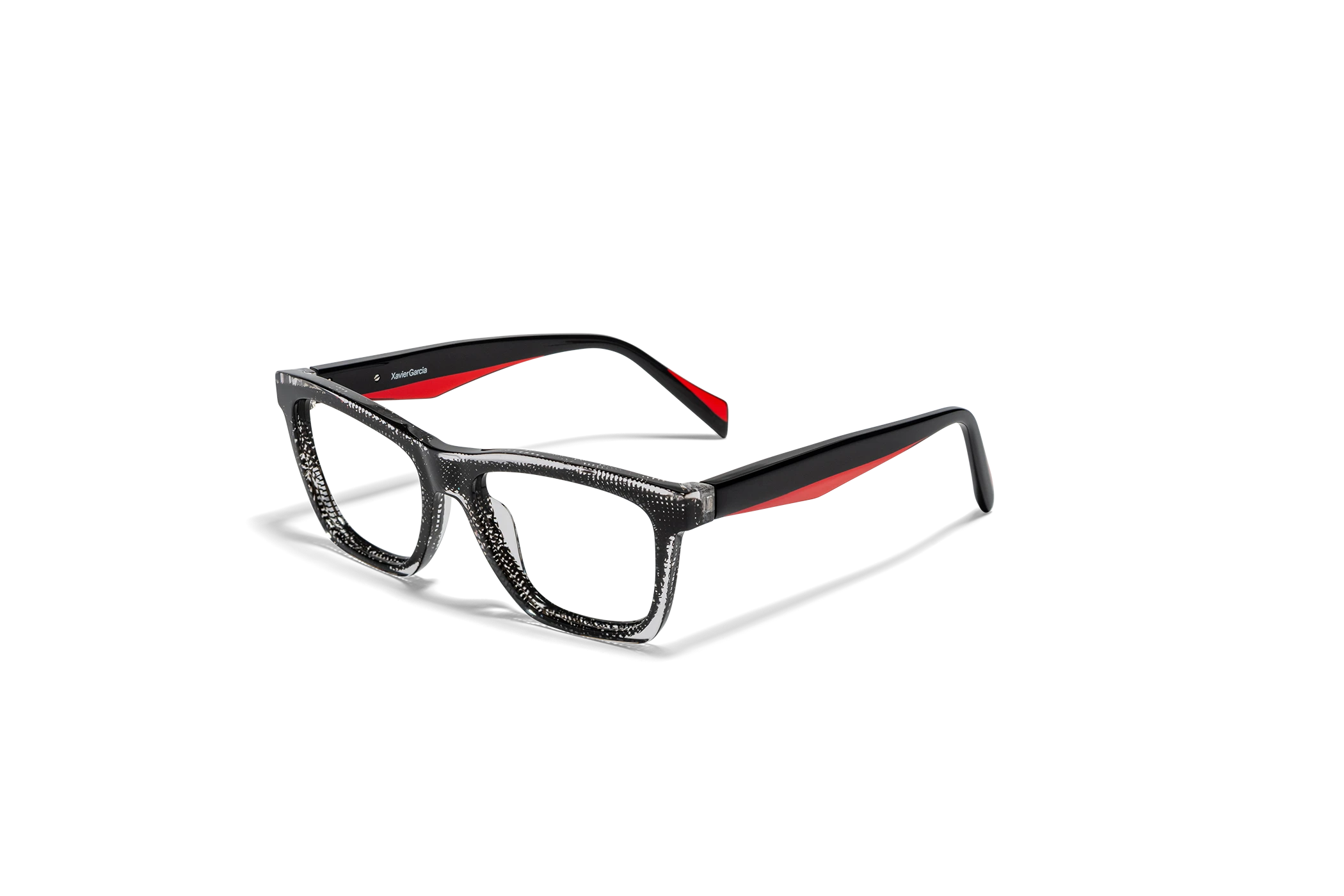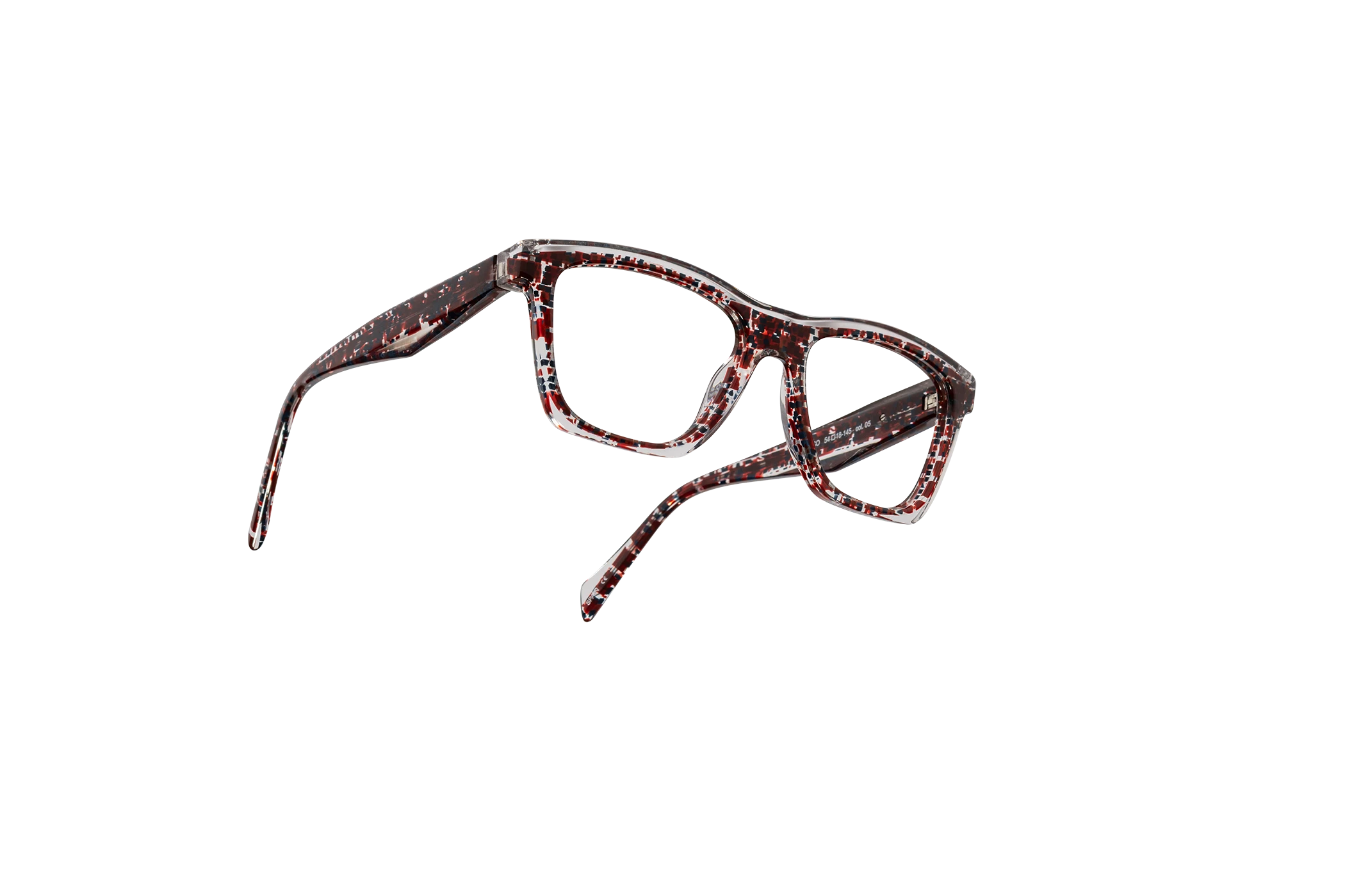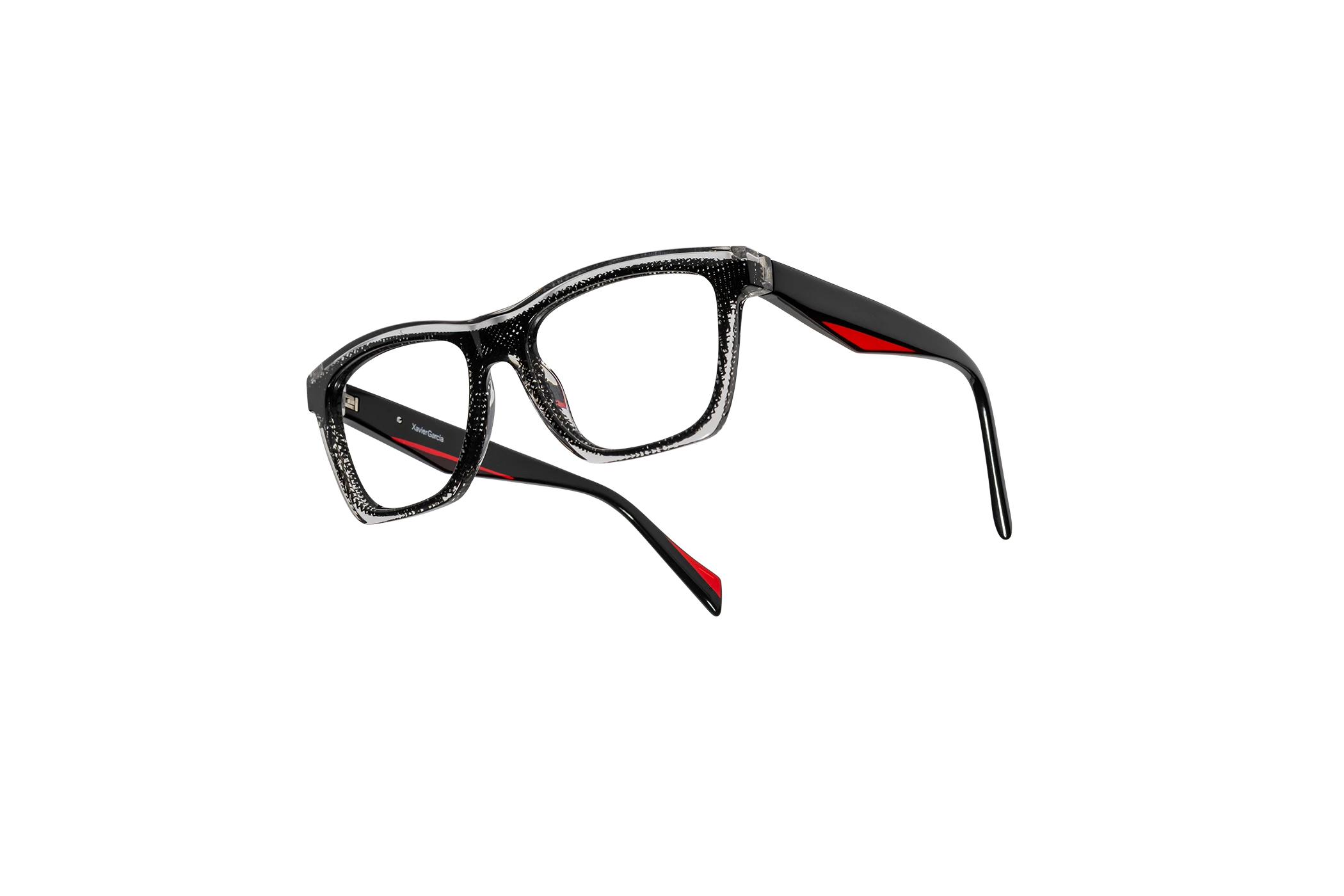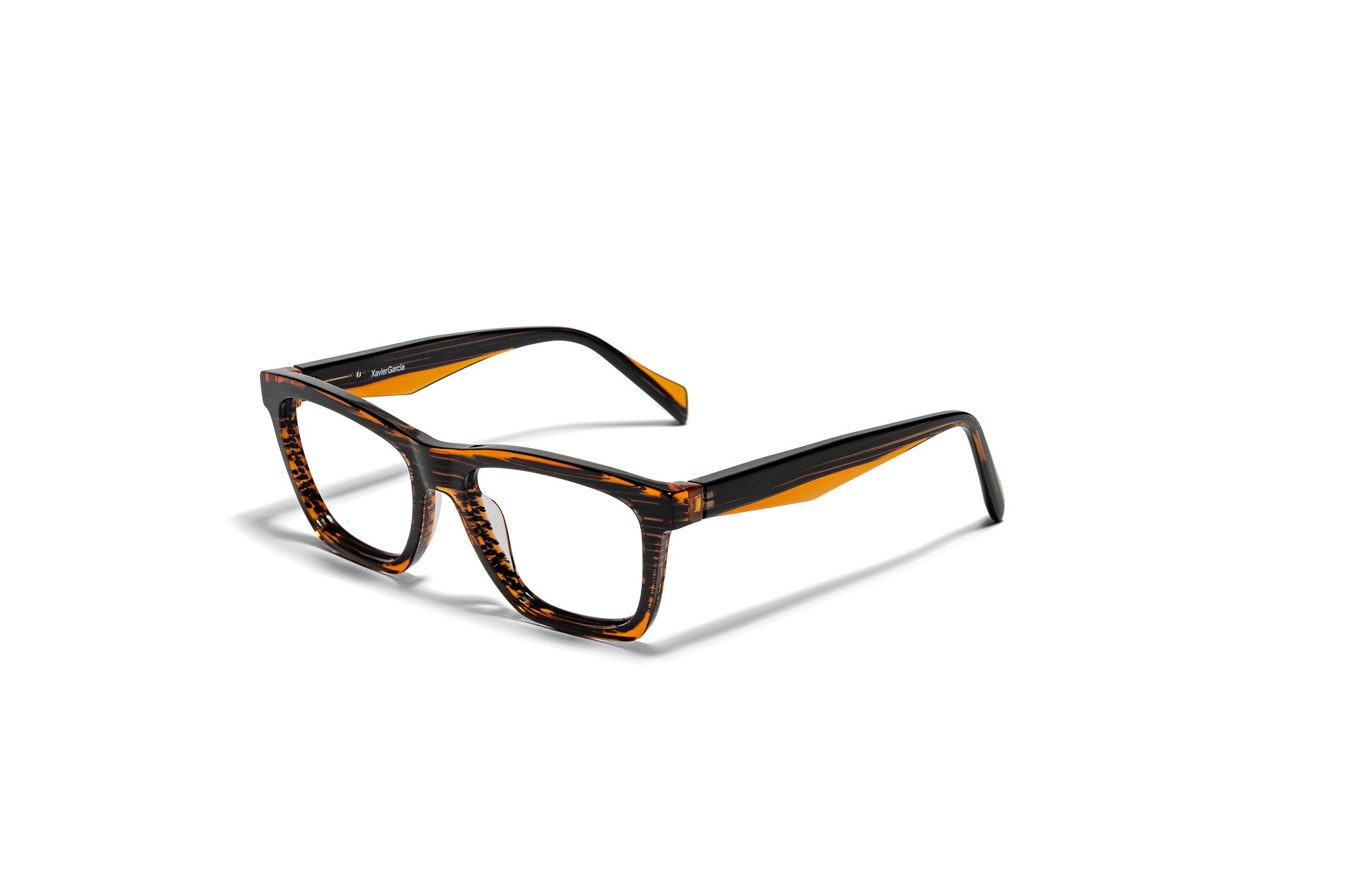 (RE)CALCO es nuestra versión de una clásica forma masculina de acetato. El laminado frontal juega con la interrelación de dos formas en una en una combinación de colores cristal que aportan luminosidad y ligereza. Flex intercambiable integrado en la varilla para un mayor confort.