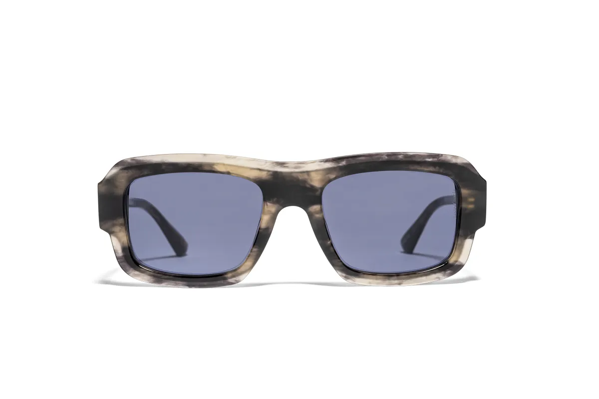 (RE)POSADO es nuestra propuesta de gafas de sol para hombre más clásica con una compacta forma rectangular. Destaca por el rebaje del acetato en su cara interna que frontalmente genera matices de color por transparencia dibujando un efecto de gafa dentro de gafa.