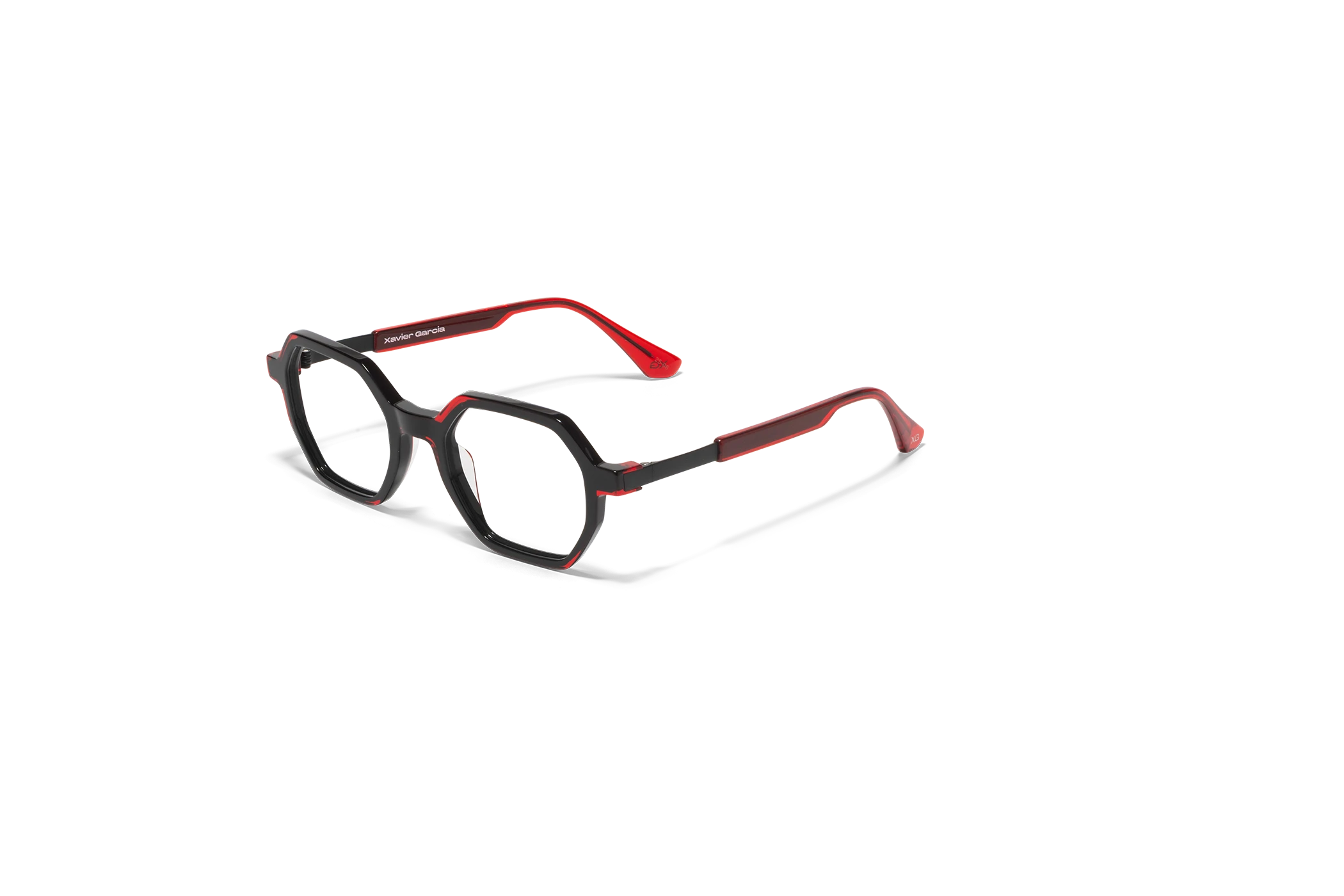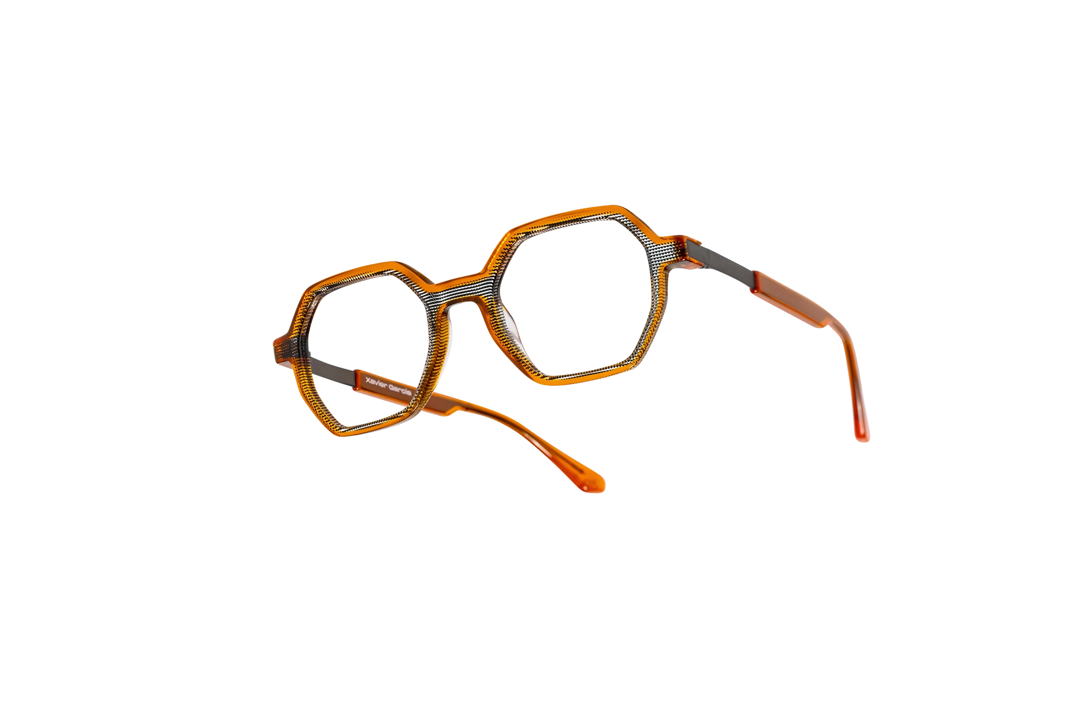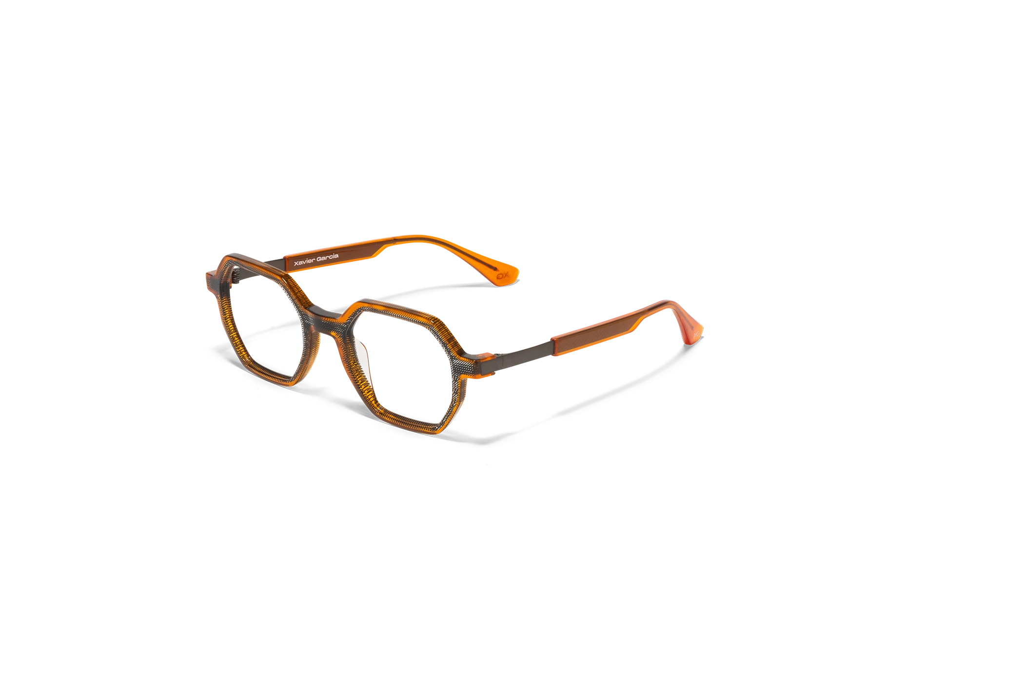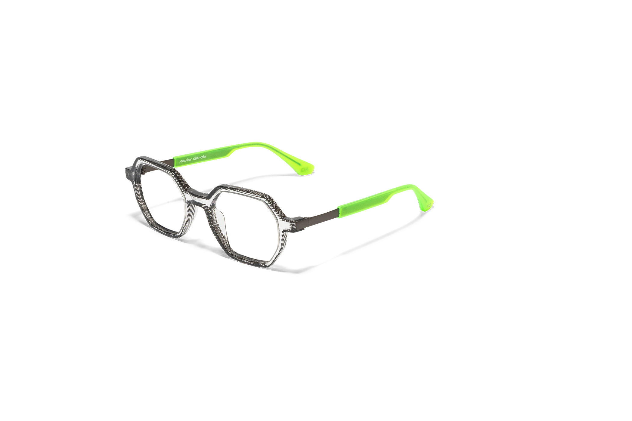 (RE)VERSO con su forma geométrica y moderna presenta un sutil juego de colores cristal. Destaca por su ligereza que le da versatilidad. La varilla combina acetato y un alma metálica grabada con un dibujo de carácter geométrico.