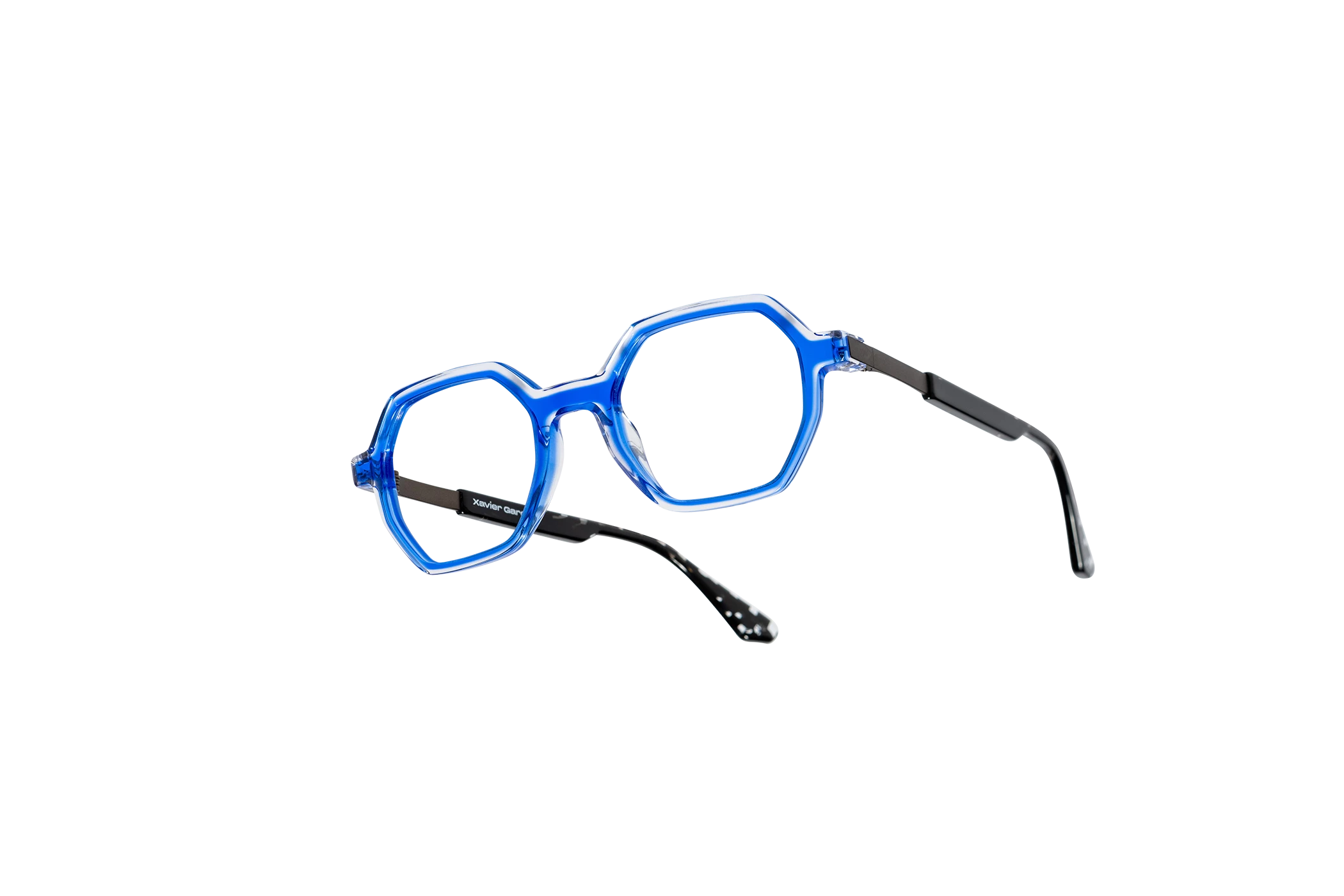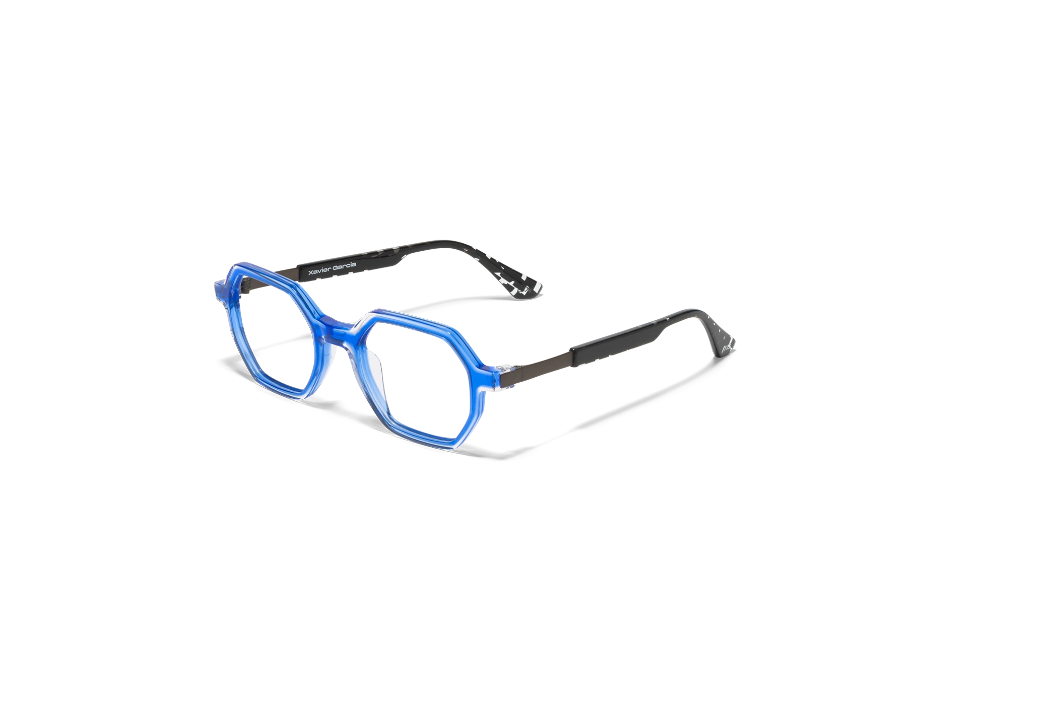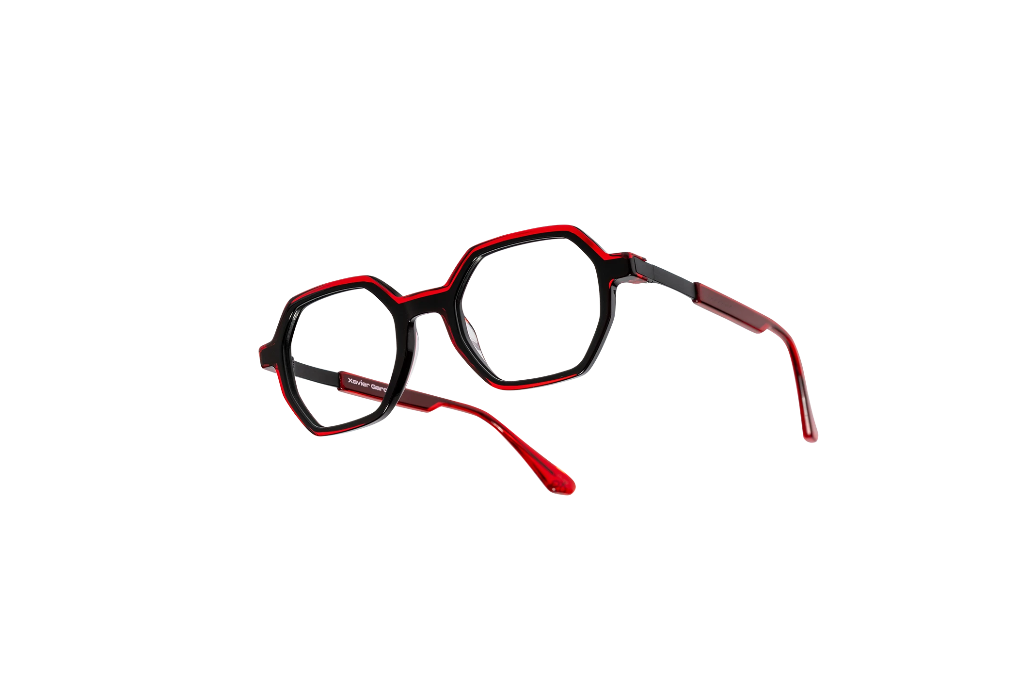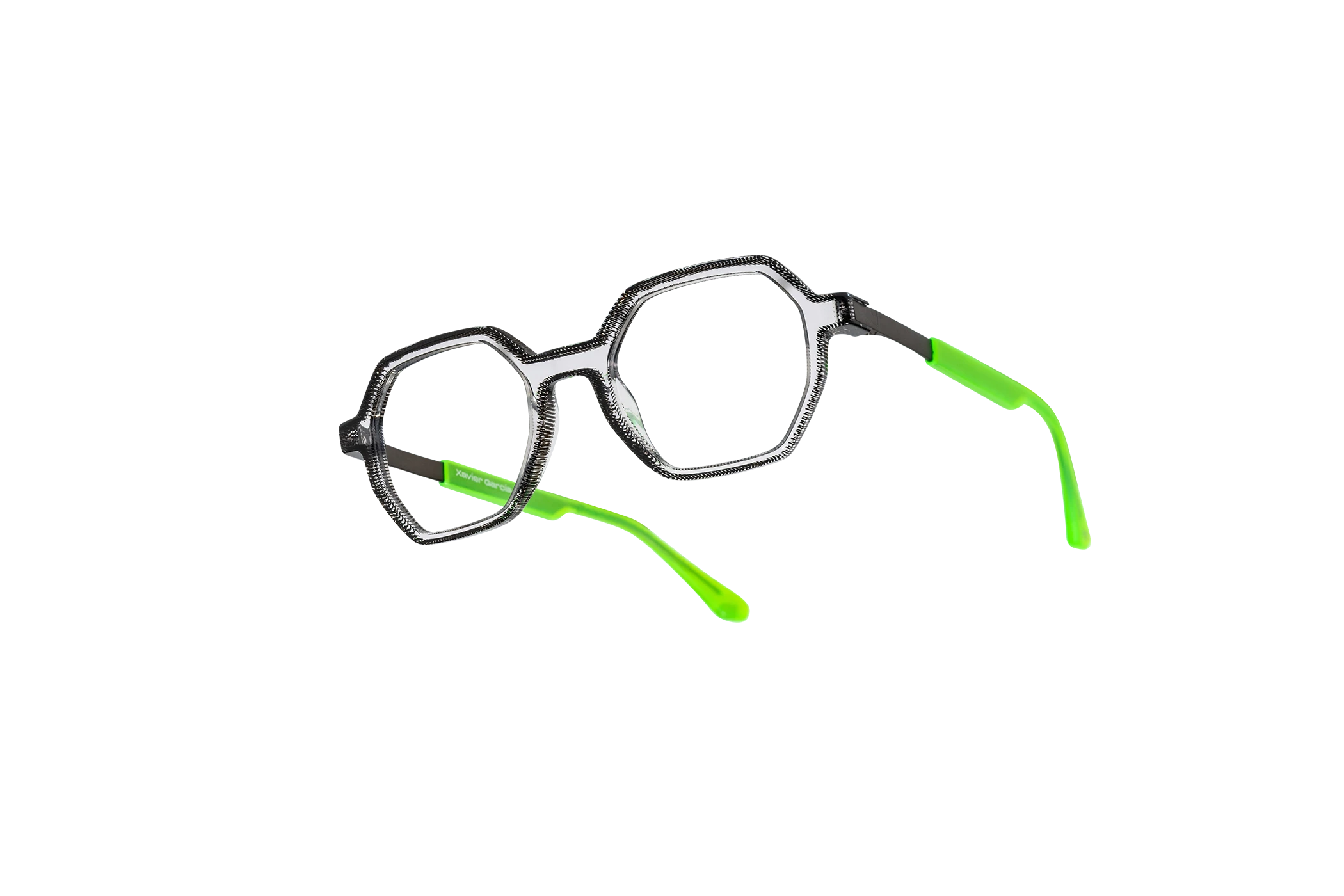 (RE)VERSO con su forma geométrica y moderna presenta un sutil juego de colores cristal. Destaca por su ligereza que le da versatilidad. La varilla combina acetato y un alma metálica grabada con un dibujo de carácter geométrico.